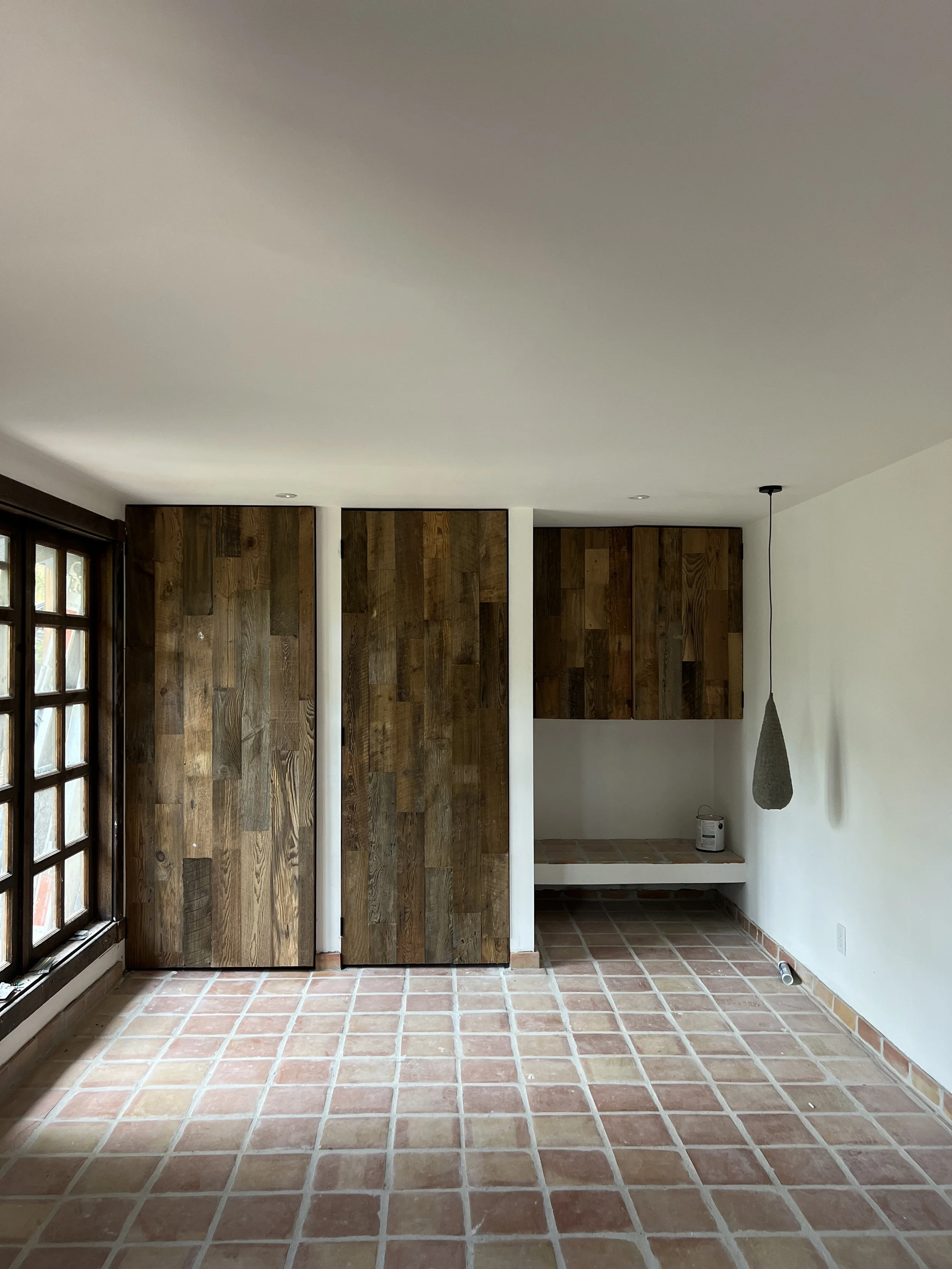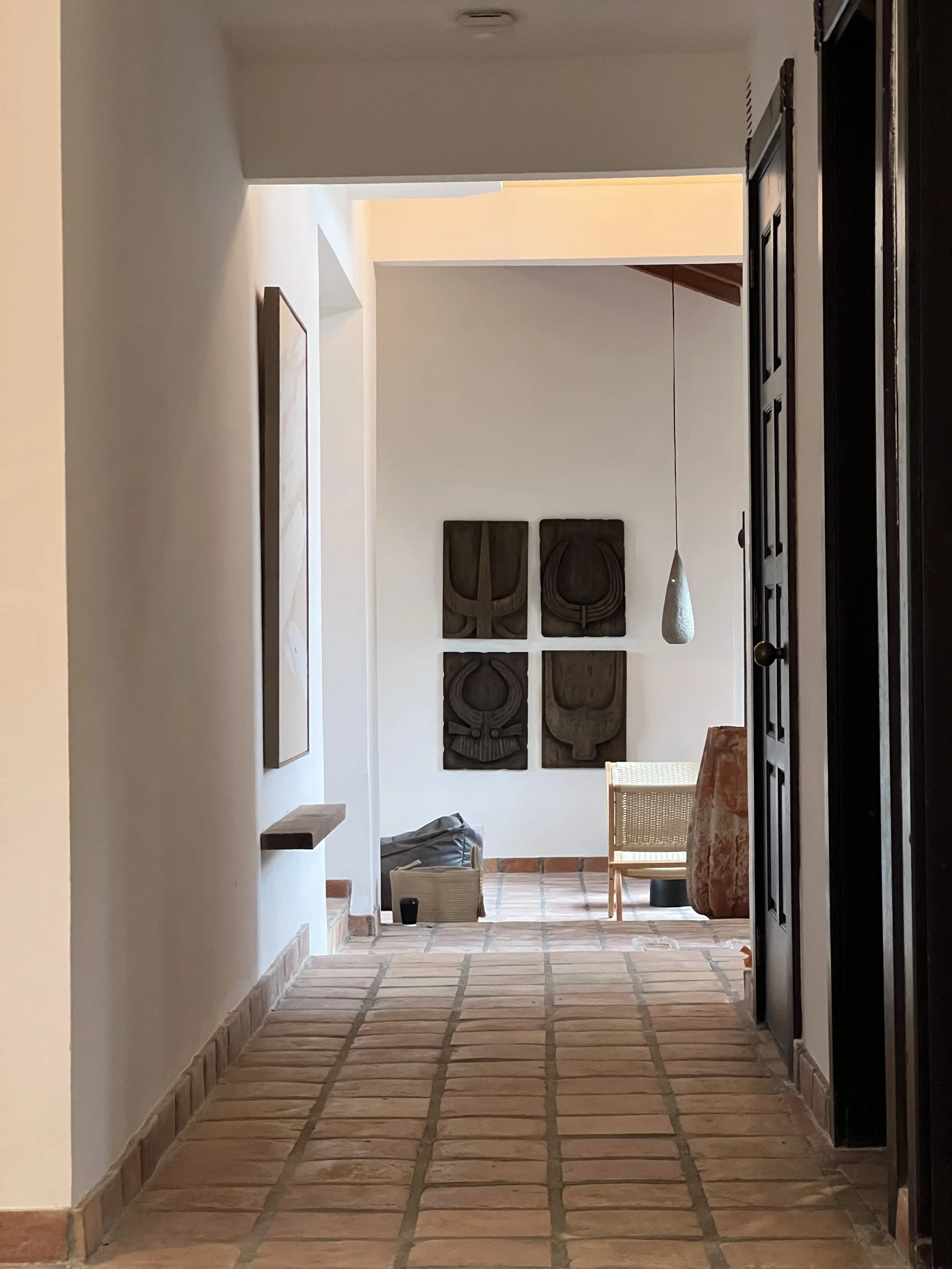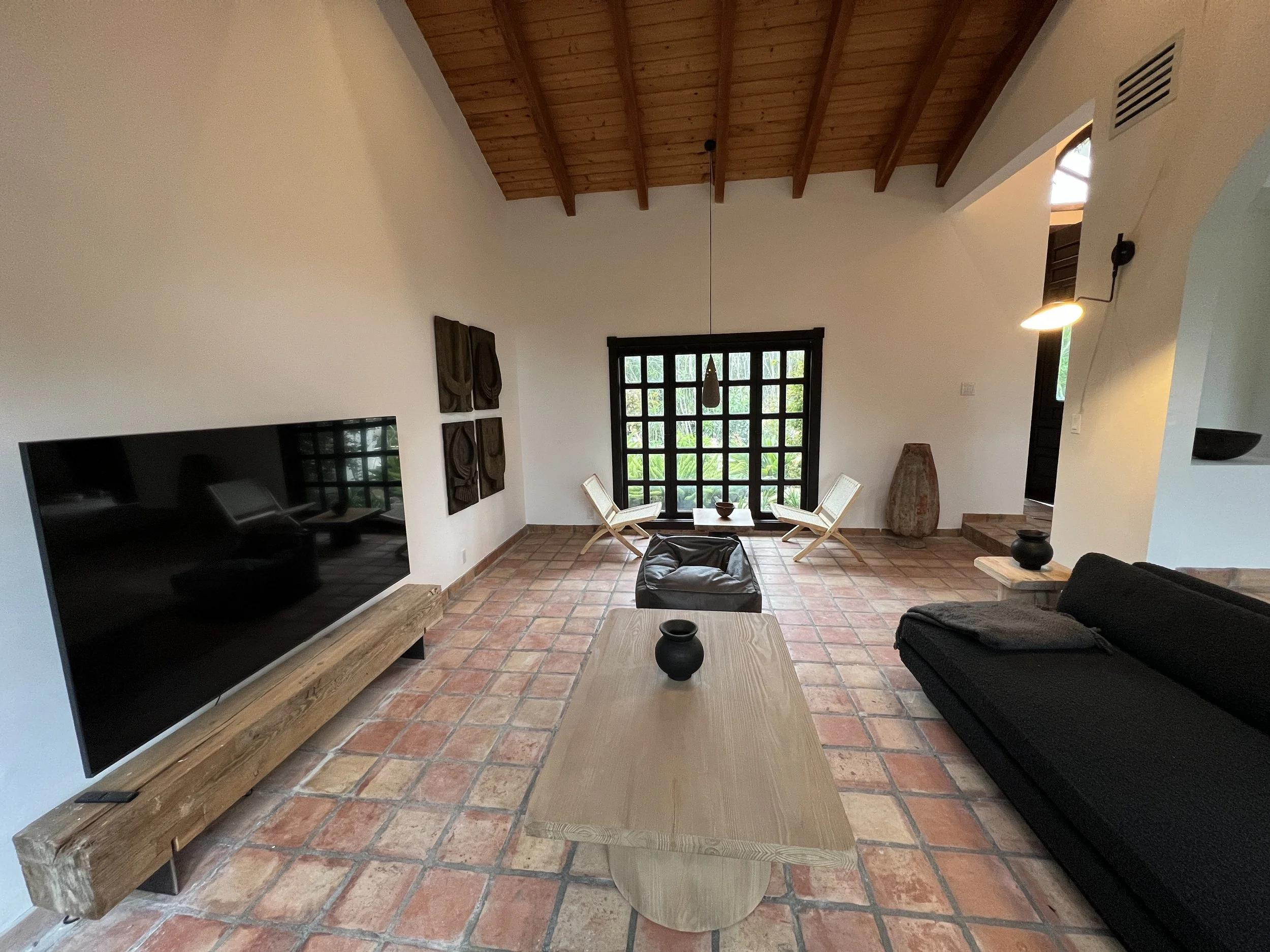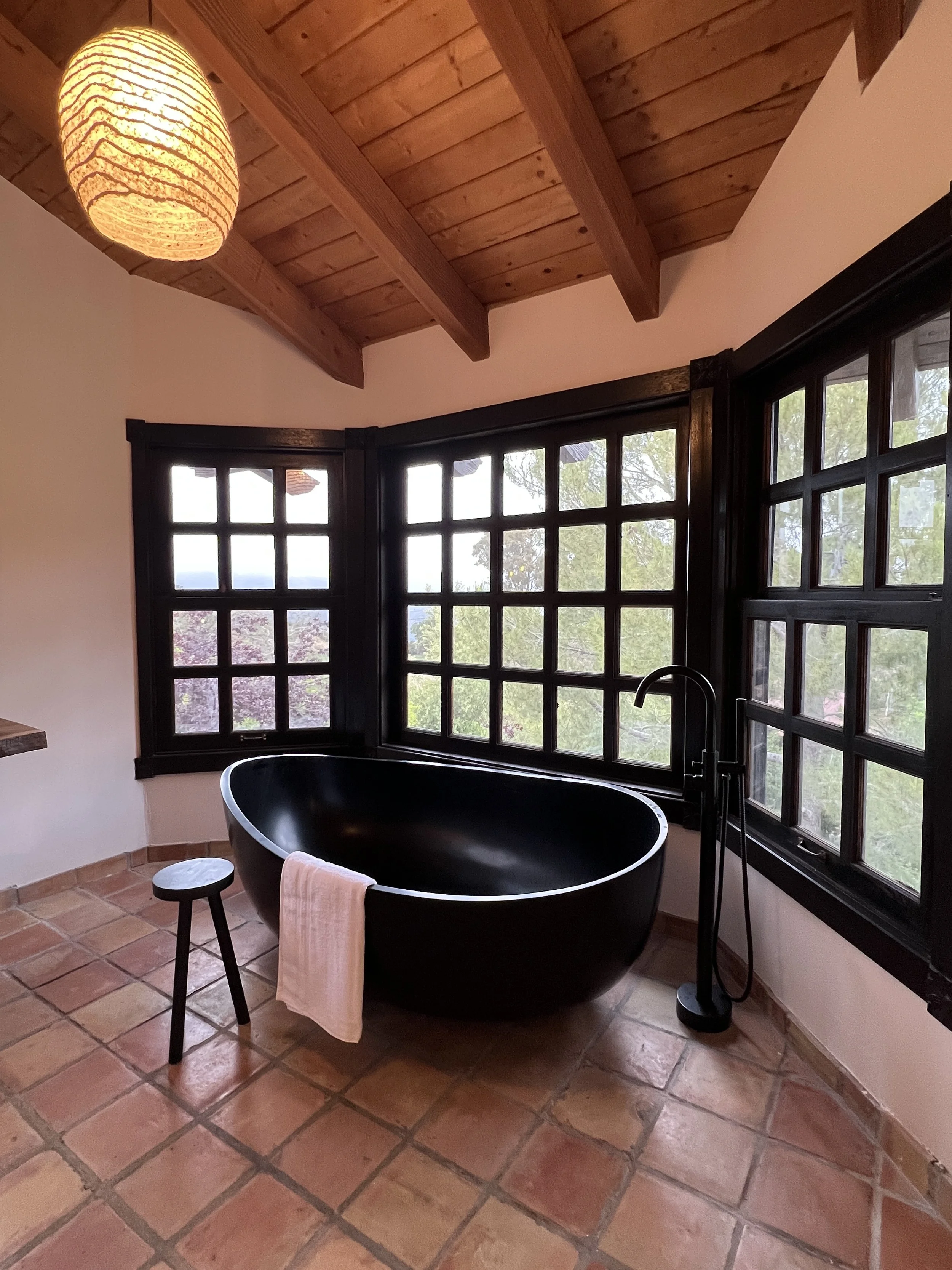 The renovation of the Buena Vista Farm House focuses on balance — preserving the warmth of traditional materials while introducing a sleek, modern aesthetic. The exposed wood ceilings, handcrafted terracotta floors, and textured plaster walls maintain the farmhouse’s authentic feel. Meanwhile, new design elements such as black fixtures, minimalist lighting, and clean lines bring a fresh, contemporary tone to the space.