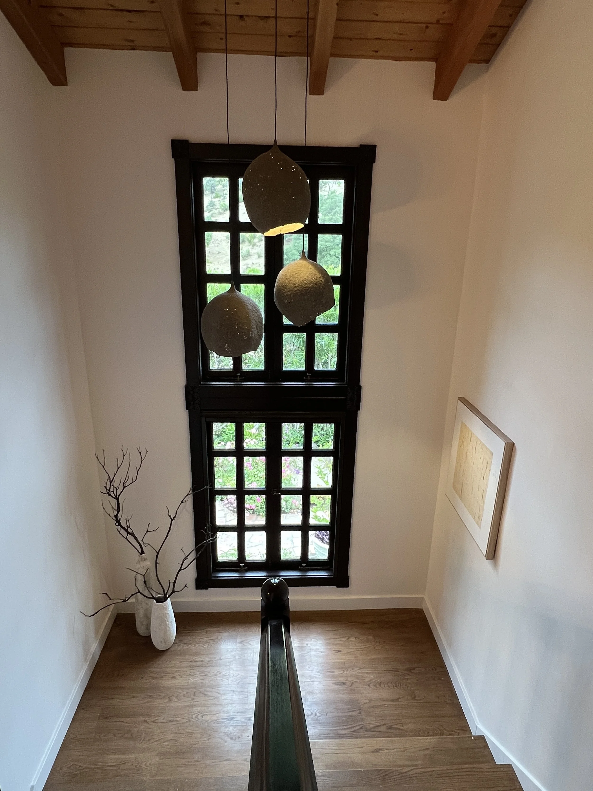 Soft Natural Lighting – Pendant lamps and built-in lighting complement the natural light, enhancing the tranquil ambiance throughout the home.