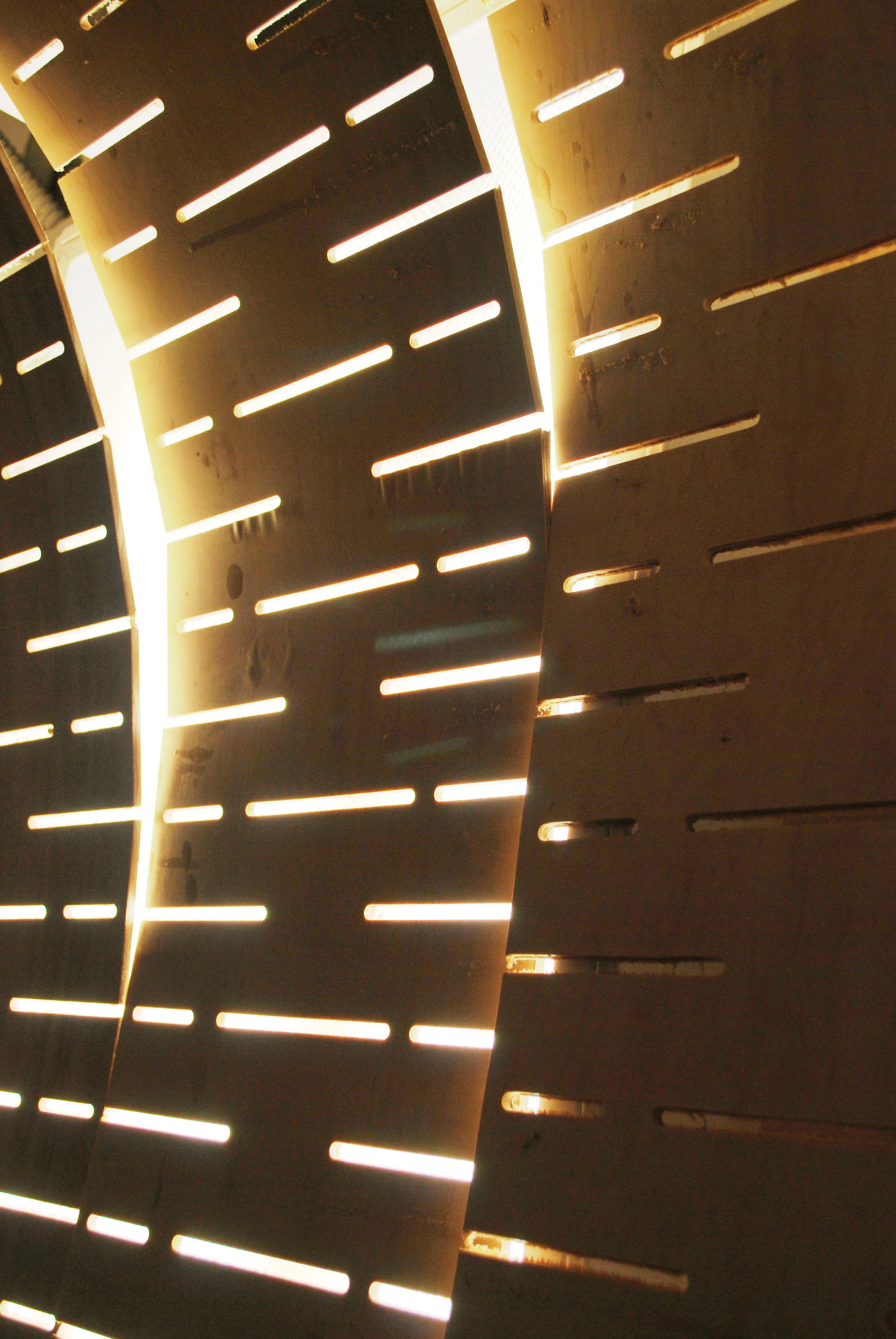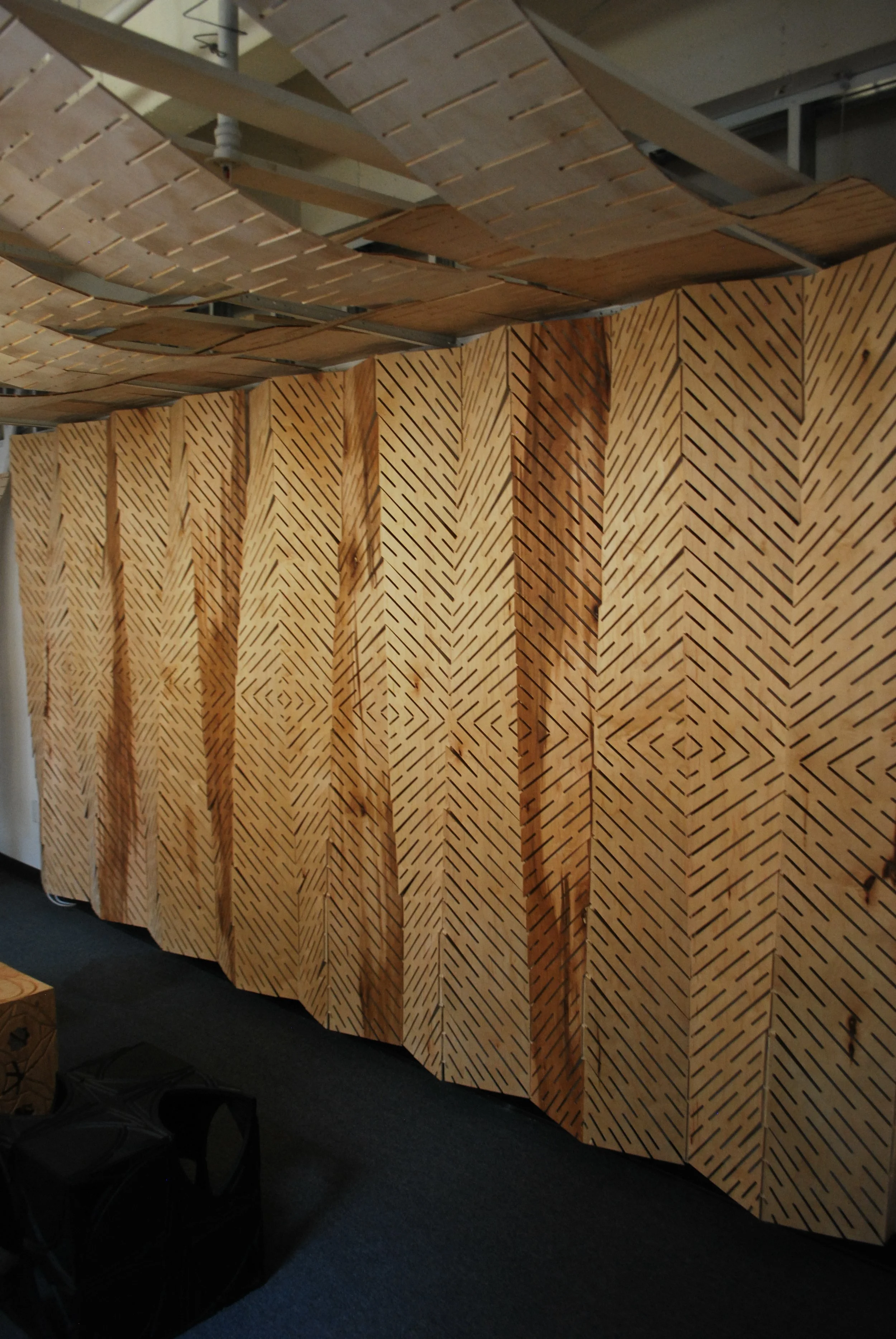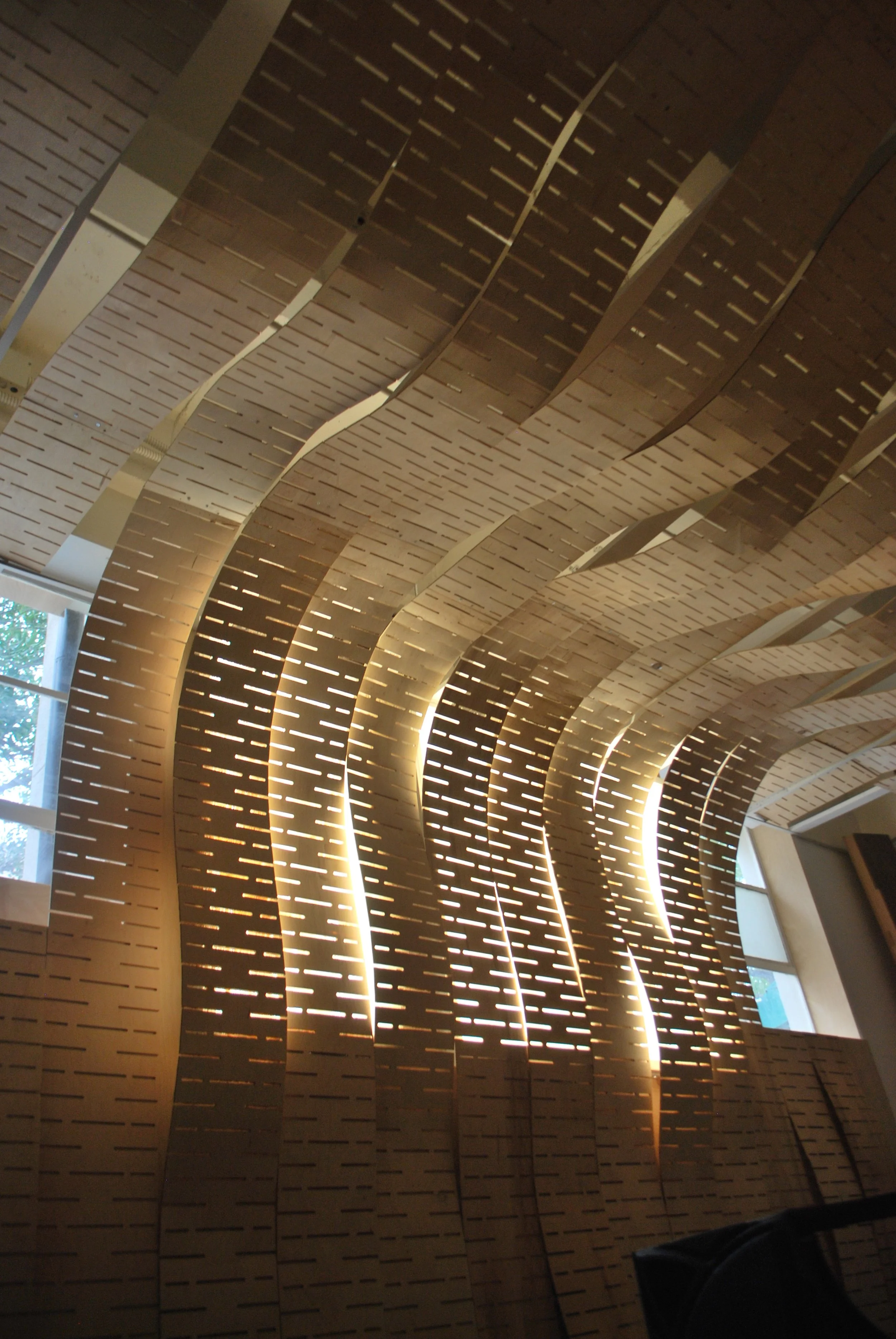 Parametric Installations – Larger installations, like the illuminated wall piece shown, demonstrate how modular components can shape spatial experience. With precision-cut panels, students created fluid geometries that transform flat material into a dynamic three-dimensional environment.